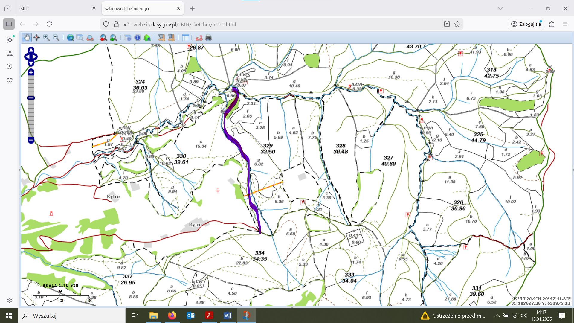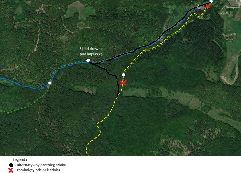 W związku z prowadzeniem prac związanych ze ścinką i zrywka drzew w oddziale 334a, c (Sucha Struga - działka 134/791) i w oddziale 330 d (Rytro - działka 1055/1) będzie zamknięty niebieski szlak PTTK – „Wola Krogulecka, Życzanów – Makowica”, który prowadzi z Woli Kroguleckiej przez dolinę leśnictwa Rzyczanów na Makowicę. Na odcinku niebieskiego szlaku przechodzącego przez oddział 330 d nie ma możliwości wyznaczenia alternatywnego szlaku (zał. mapka – 330 d – niebieski szlak zamknięty).